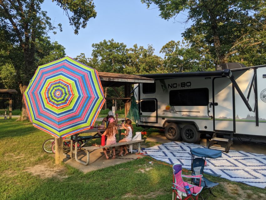 When we got here, we had to have a talk with the girls about chilling out because we can’t keep going at the pace we had been. So, we need to sit around and find other things to do to entertain ourselves. Then of course we went on an exploration walk to find the bathrooms, showers, laundry, and playground before getting some firewood. We made a fire and roasted dogs and made smores (we hadn’t done it in a while).